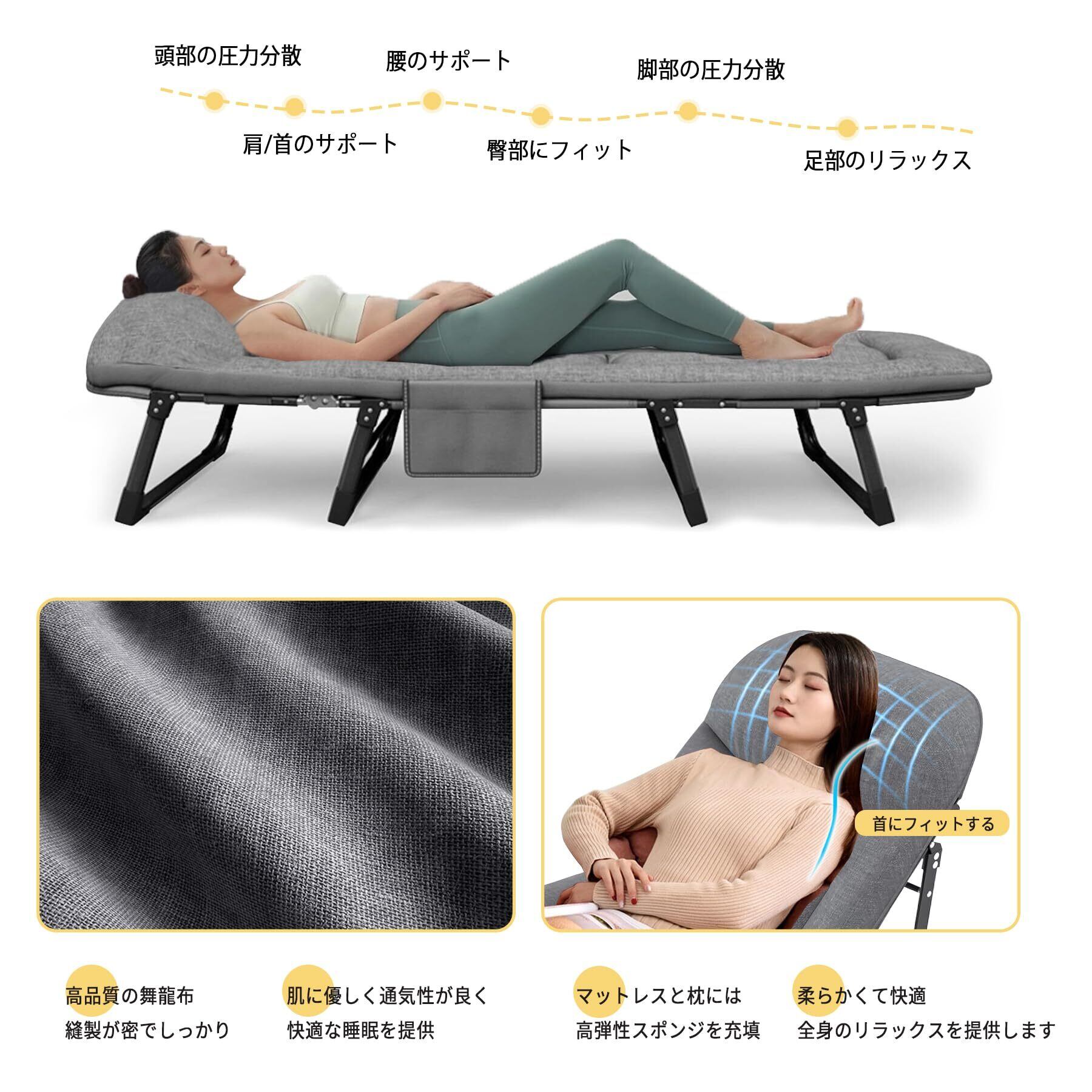 【人気商品】折りたたみベッド ベッド幅66cm より幅広 太く強化された鋼製フレームで安定性アップ さらに快適静音設計 6段階調節可能 枕付き・収納袋付属 携帯に便利 (180) | KURASHILABO