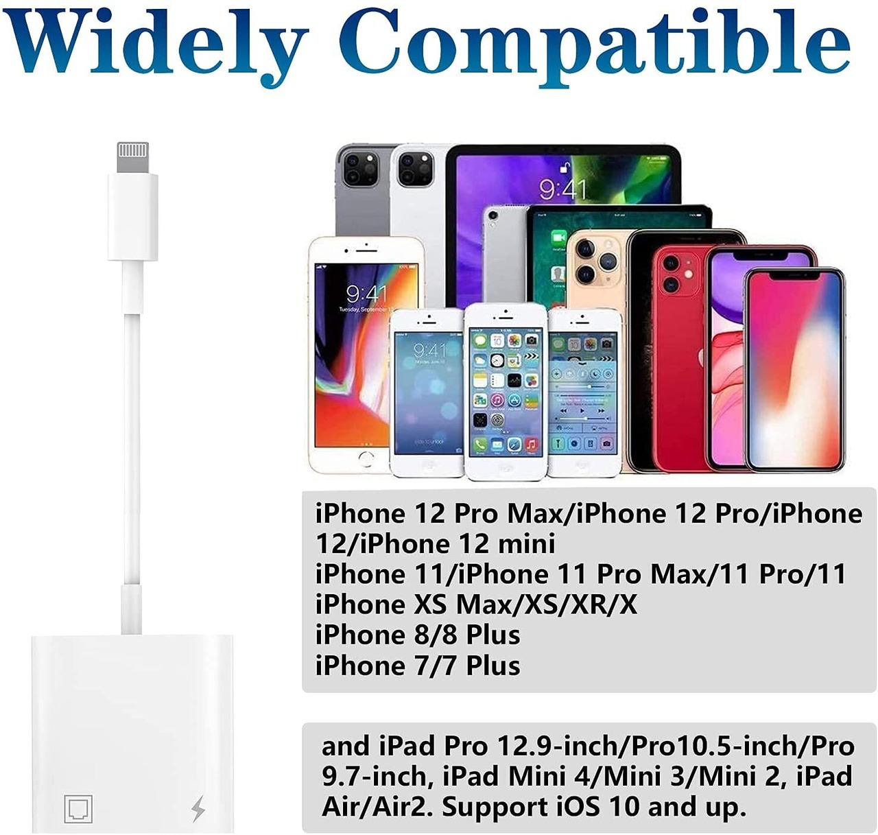 LightningからRJ45 LANイーサネット有線ネットワークケーブルアダプターは、iPad/iPhoneを接続します。充電ポート付きで外部USB電源は必要ありません。