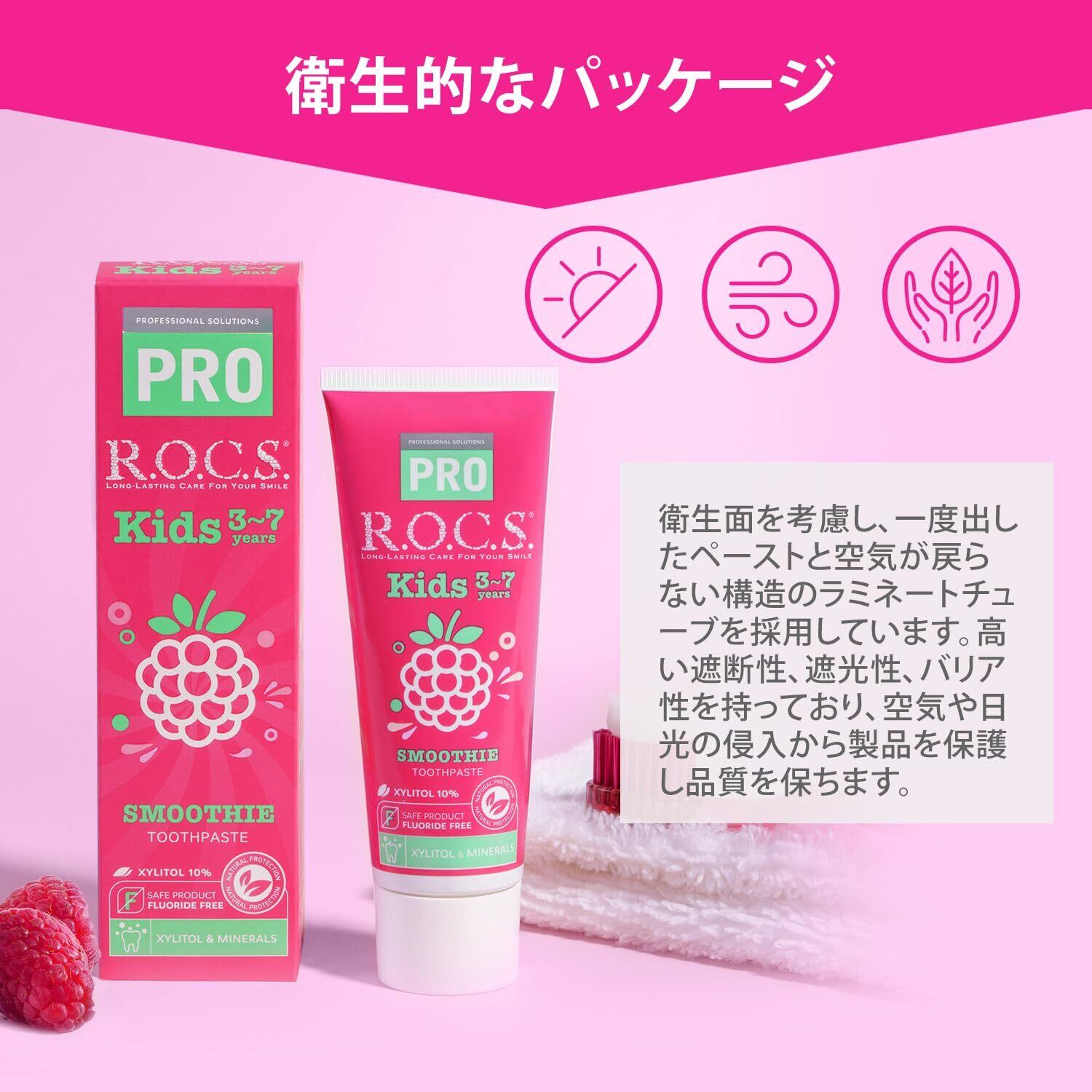 R.O.C.S. ロックスPRO キッズ(3~7才) ラズベリースムージー味【ミネラル配合】フッ素不使用 こども歯みがき 45g