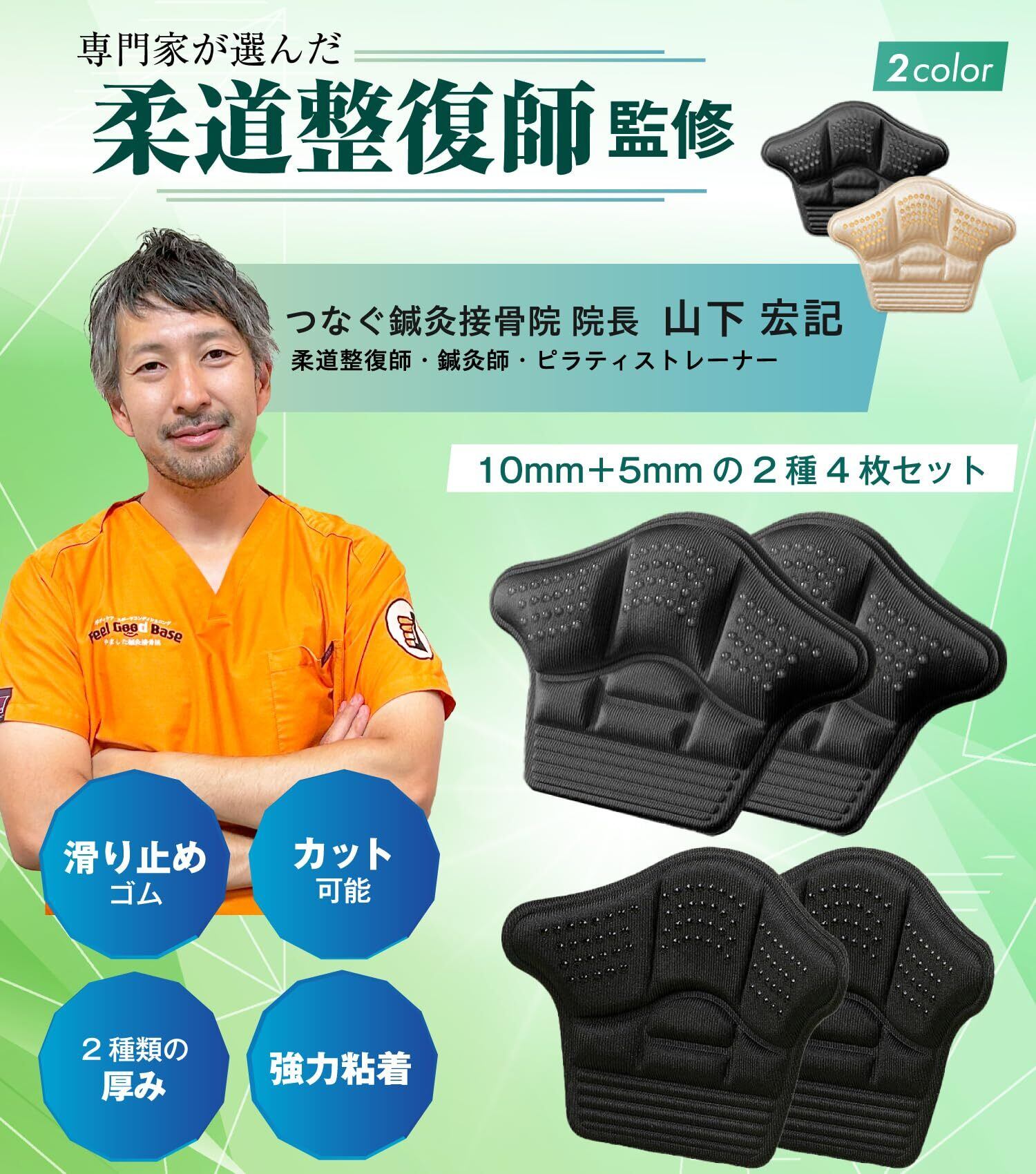 【在庫処分】【柔道整復師推奨】RELAXEE かかとパッド 強粘着 靴ズレ防止 靴擦れ かかと 靴のサイズ調整 かかとクッション カット調整可能 10mm厚2枚 5mm厚2枚 合計4枚セット (ブラック) | KURASHILABO