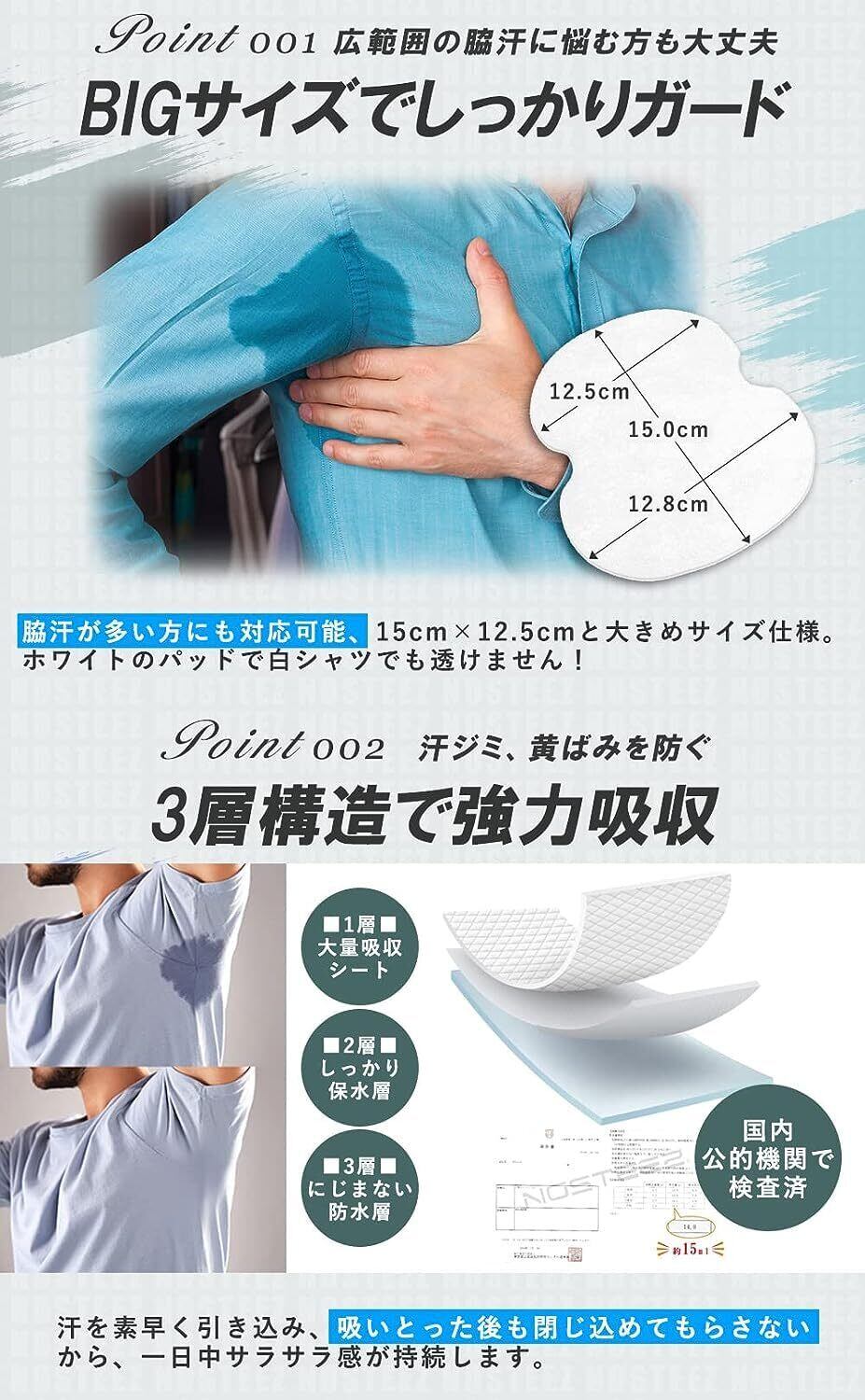 特殊3層シートによる脇汗吸収量15ml ※国内公的機関で検査済