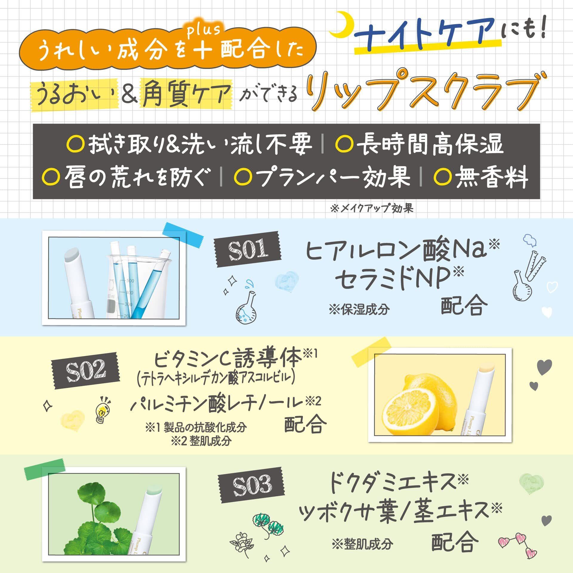 キャンメイク プランプリップケアスクラブ+ S01 ウォーターブルー 2.3g ヒアルロン酸 セラミド 角質ケア 洗い流し不要 無香料