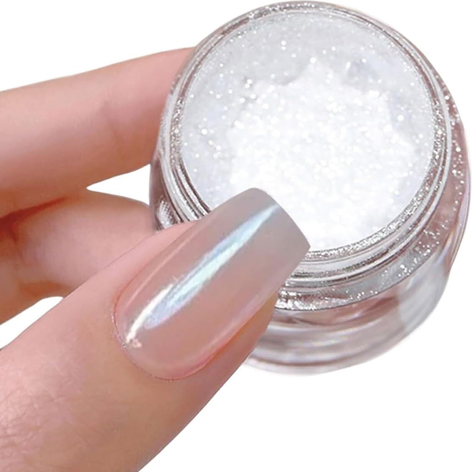 BRIIKPP オーロラネイルパウダー 白 固形タイプ 細かい粒子 ミラーパウダー 輝くネイルアートに最適 自宅 サロン 工房向け