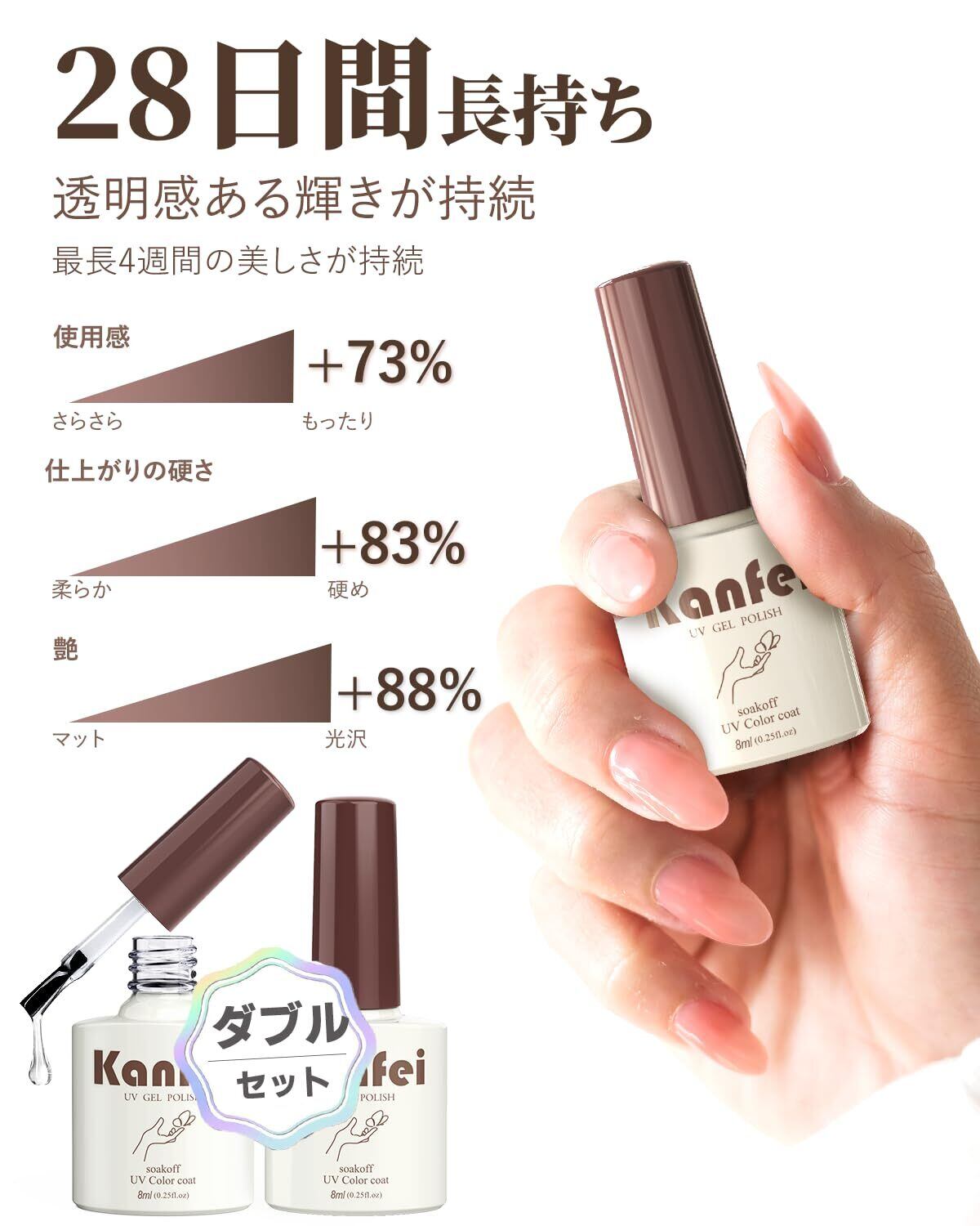 【新着商品】kanfei ジェルネイル トップコート26ml(トップコート13ml×2本) ノンワイプ 拭き取り不要 大容量 UV/LED対応