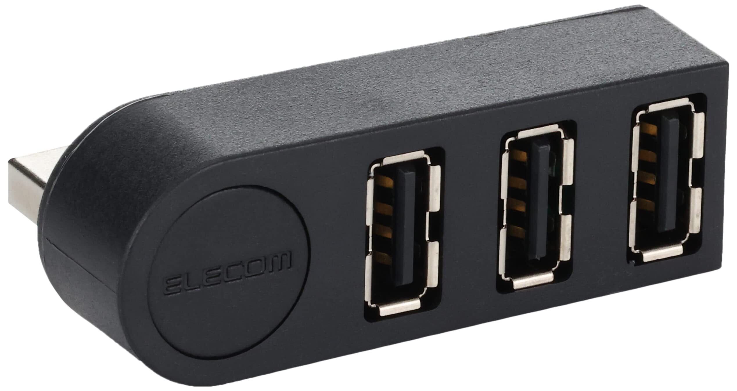 【特価商品】エレコム USBハブ 2.0 バスパワー 3ポート 直挿し 機能主義 MacBook/Surface Pro/Chromebook他 ノートPC Nintendo Switch対応 ブラック U2H-TZ325BXBK