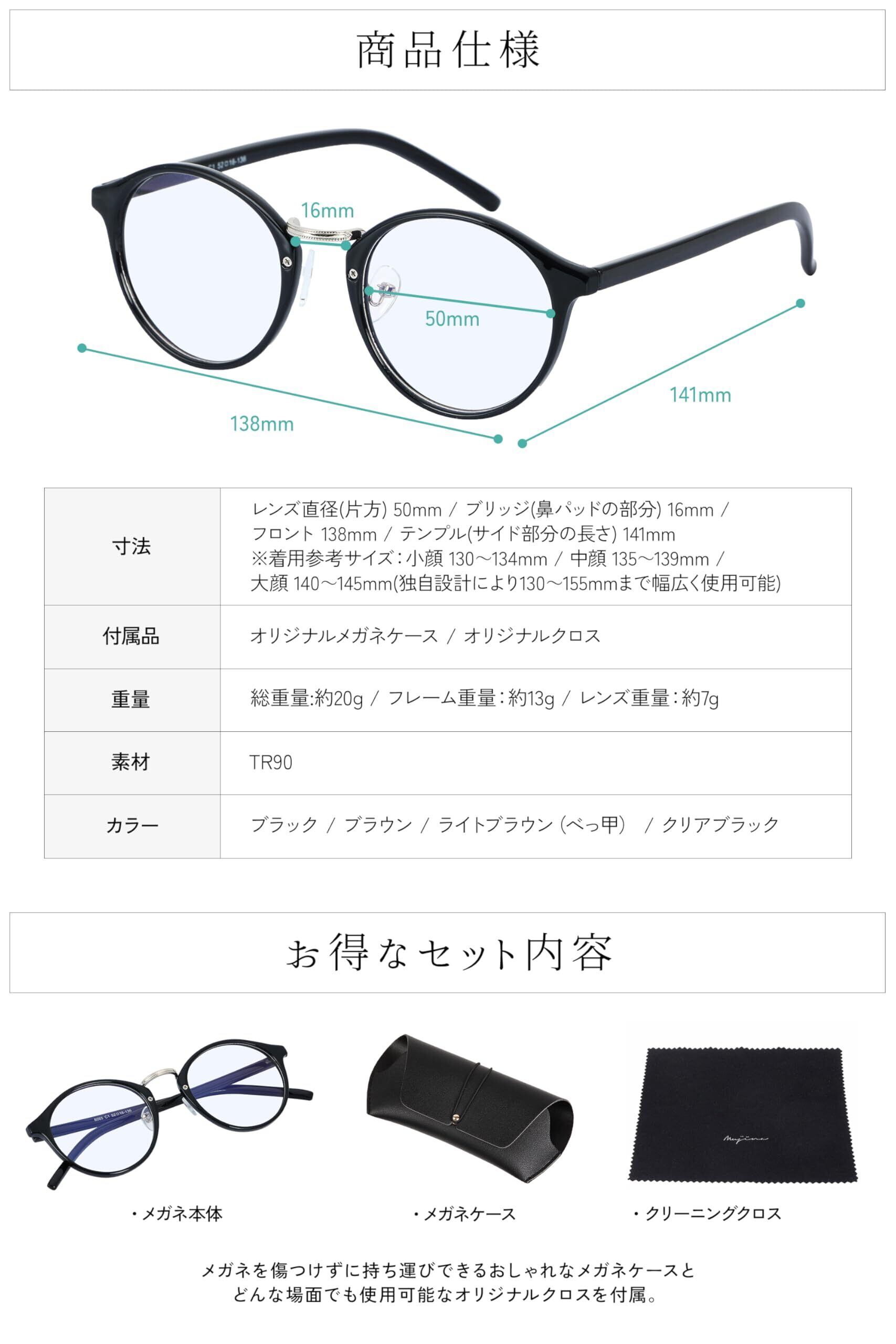 [mujina] PCメガネ JIS検査済み ブルーライトカット 98% UV420 紫外線カット ボストンタイプ 透明レンズ 眼精 視力保護 パソコン用 眼鏡 ケース クロス セット 男女兼用