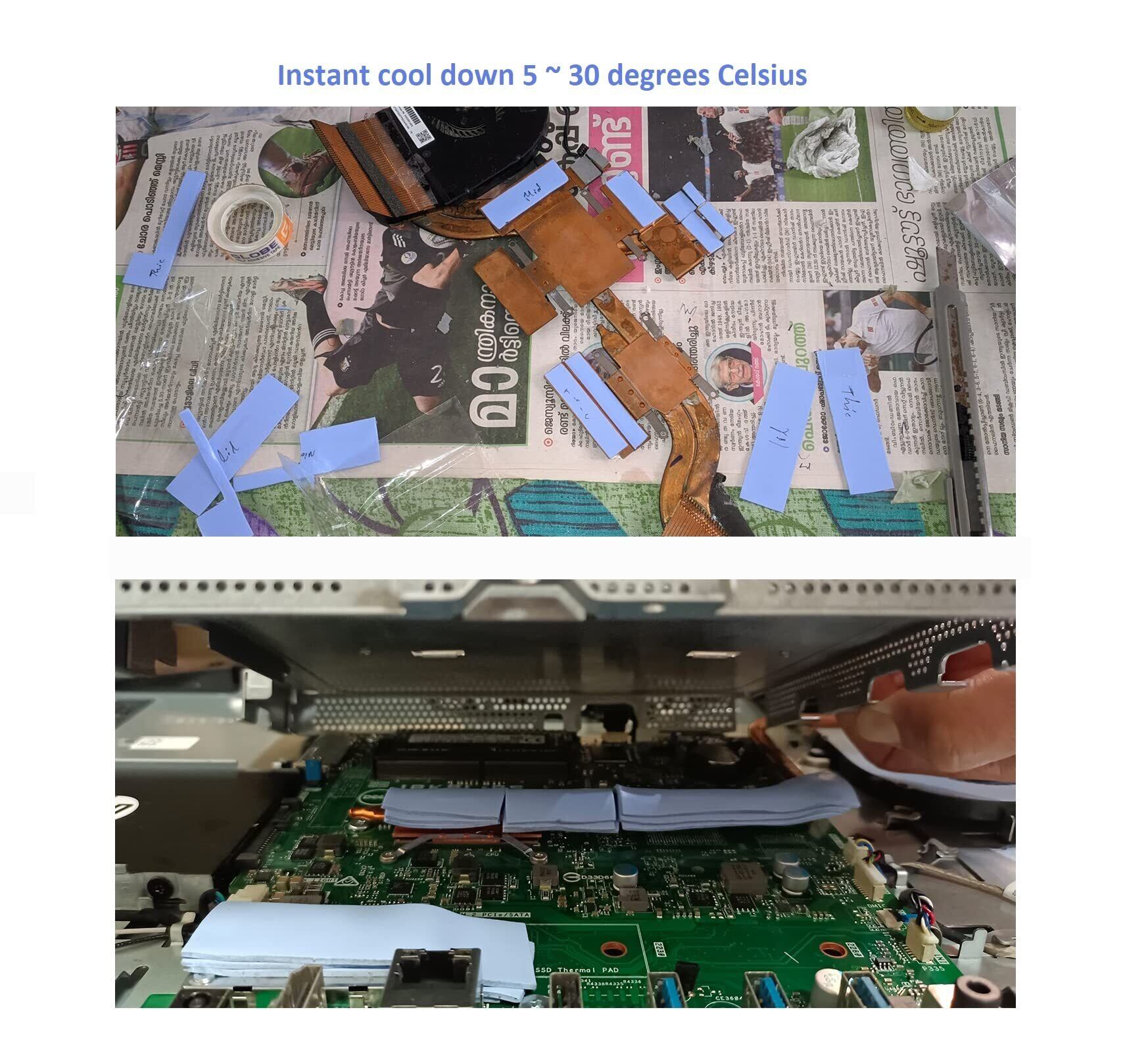 HASAYAKIサーマルシリコンパッドを使用すると、熱源からパッド全体、そしてヒートシンクに瞬時に熱を伝達できます。 サーマルパッドのみでピーク温度が5℃から10℃まで数秒で下がります。 ヒートシンクを使用すると、ピーク温度が10℃から30℃低下する可能性があります。 HASAYKIサーマルパッドは表面が不規則な場合に柔らかく、粘着性があり、電子機器に損傷を与えることなく簡単に取り外すことができます。 これらは、ラップトップ、ルーター、グラフィックカード、ドローン、プレイステーション、NVMe SSD、HDD、セットアップボックス、DVD、メディアプレーヤーなどの修理、クリーンアップ、保守、更新に最適です。
