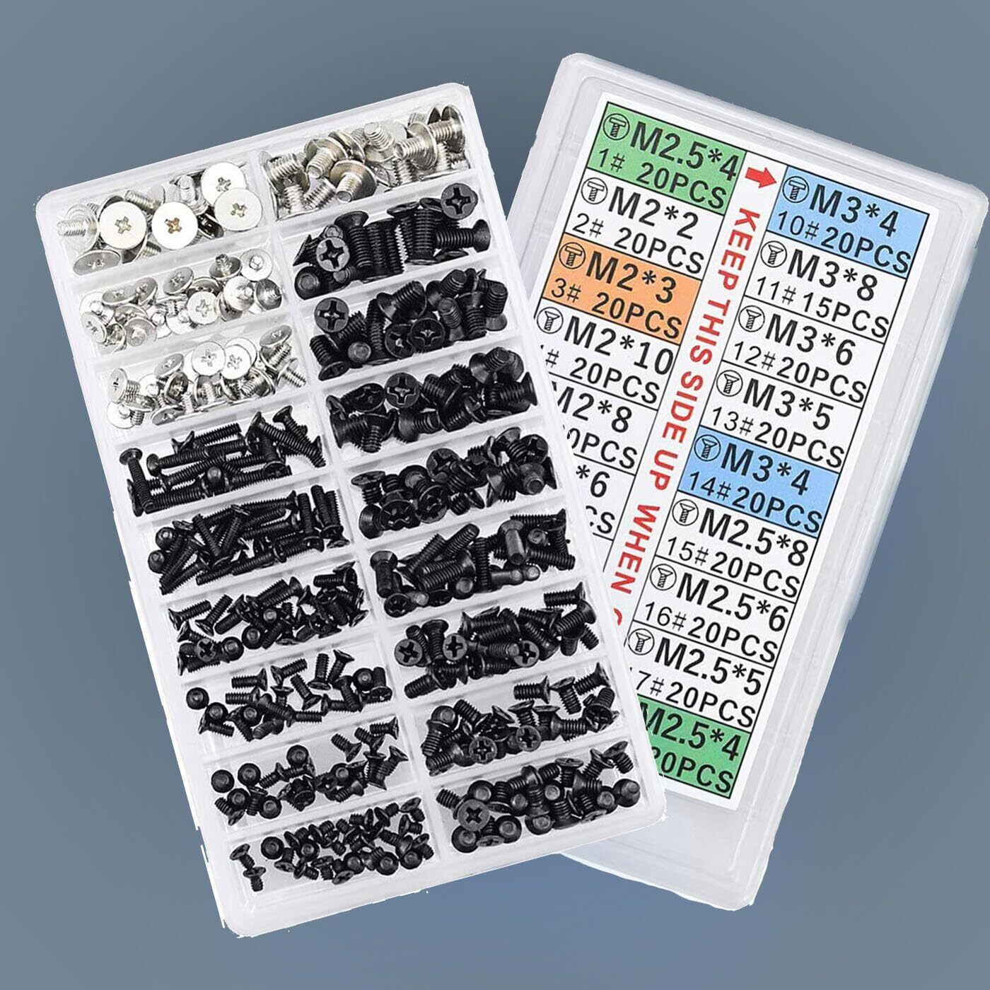 HUIKKJP(小さな店) ノートパソコン用ネジセット M2 M2.5 M3 HDD M.2 SSD 固定用平ネジセット 355本入り 収納ケース付き
