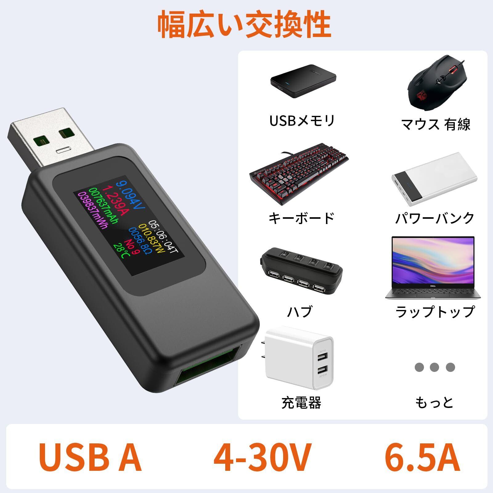 【USBAパワーメーター】このUSBテスターは、タブレット、充電器、パワーバンク、ケーブルなどのUSBAデバイスの電圧、電流、電力、容量、エネルギー、時間、温度を測定できます。