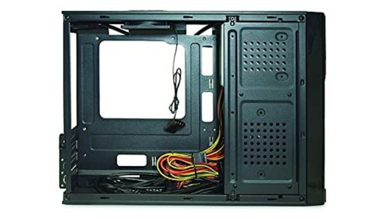 SFX300W電源搭載 マイクロATXスリムケース 5インチオープンベイ1本、3.5インチシャドウベイ2本、2.5インチシャドウベイ2本を備え、幅152mm、高さ315mm、奥行420mmのスリムコンパクト設計 トップ部に3ピン8cmファンを1個搭載済みで、SFX300W電源のコネクタレイアウトは、無駄なくきれいに組み立てられるように本PCケース向けにカスタマイズ済み