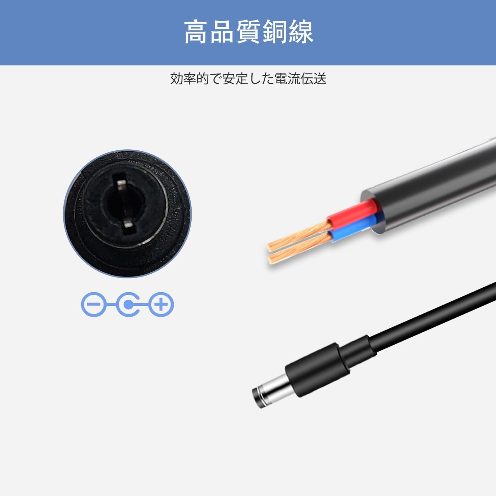 「高い耐久性」DC エンドプラグはラベルプリンターの充電ポートにぴったりフィットする直角デザインで、サイズも完全に互換性があります。ポートはコンパクトで、直角デザインにより電源コードの破損を防ぎます
