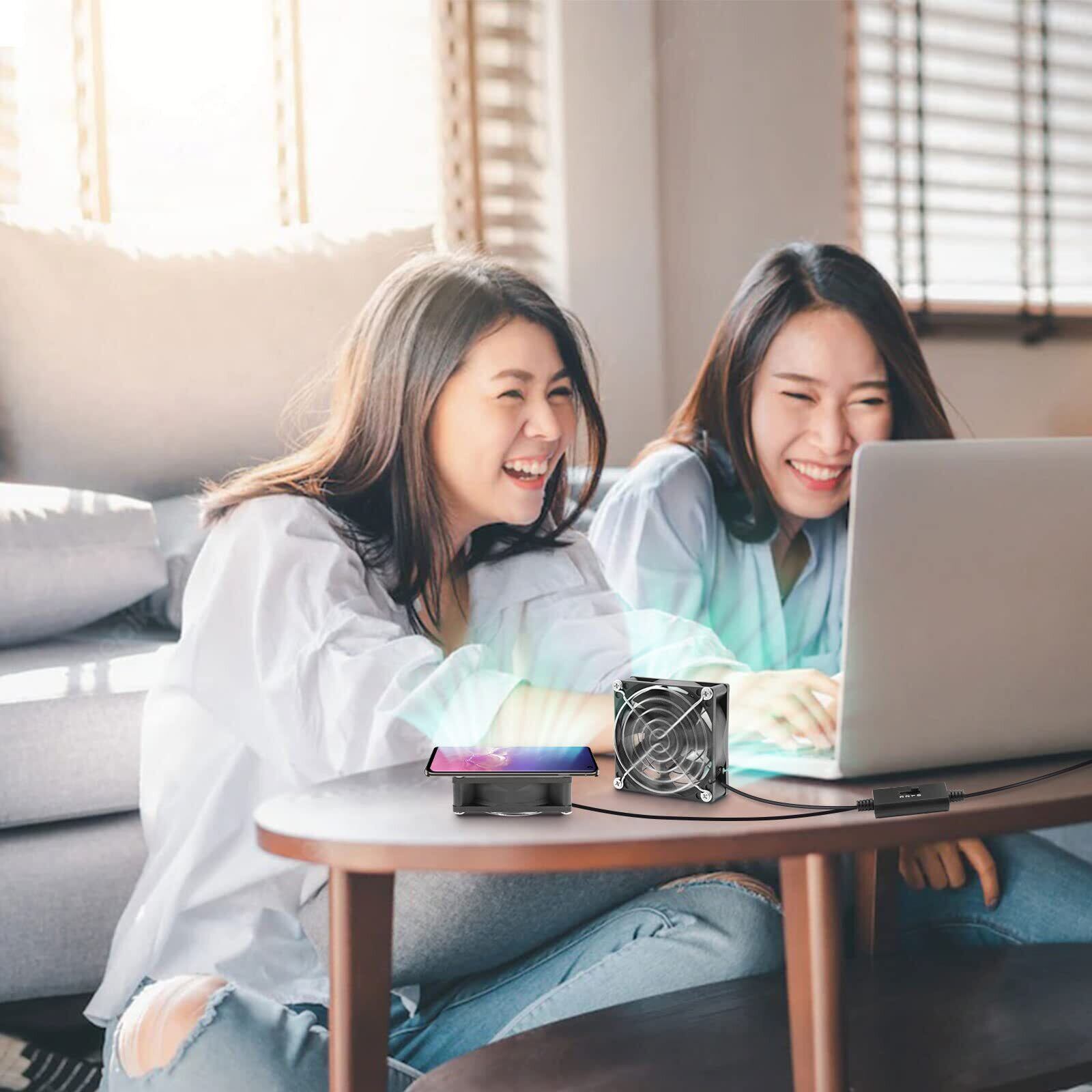 一つのUSBプラグからケーブルを2本に分けられ、8cm 5v ファン 2台を連結して、更なる風量を得ています。多角度、自由に設置できます。