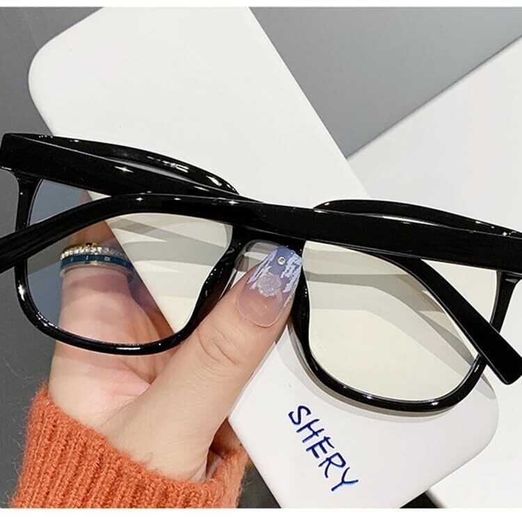 黒縁とクリアレンズの組み合わせがシンプルながらも洗練された伊達メガネ。ブルーライトカット機能付きで、パソコンやスマホを長時間使用する女性の目を優しく守ります。韓国トレンドを意識したデザインで、普段のコーデにおしゃれなアクセントをプラスする万能アイテムです