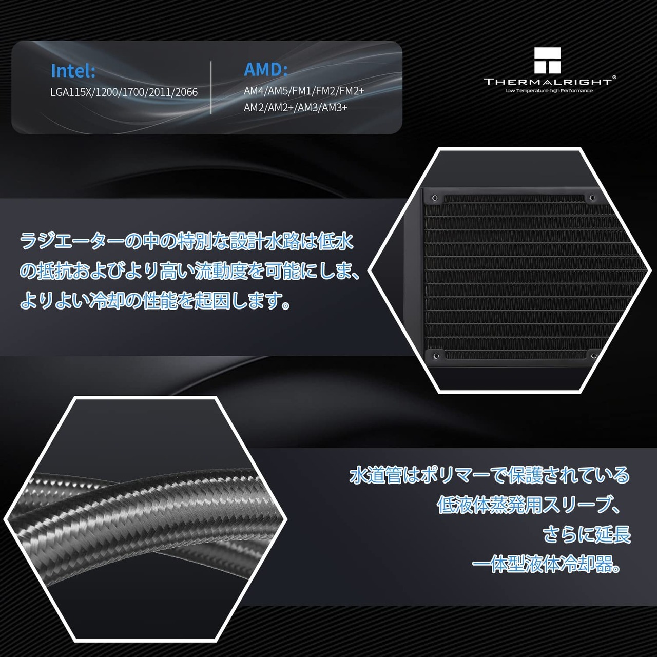 【人気商品】Thermalright AQUA ELITE 360 ARGB 水冷CPUクーラー、360クーラーサイズ、120mm PWMファン×3、S-FDBベアリング、AMD/AM4、INTEL LGA1150/1151/1155/1156/1200/2011/1700 用 ARGB オールインワン水冷クーラー