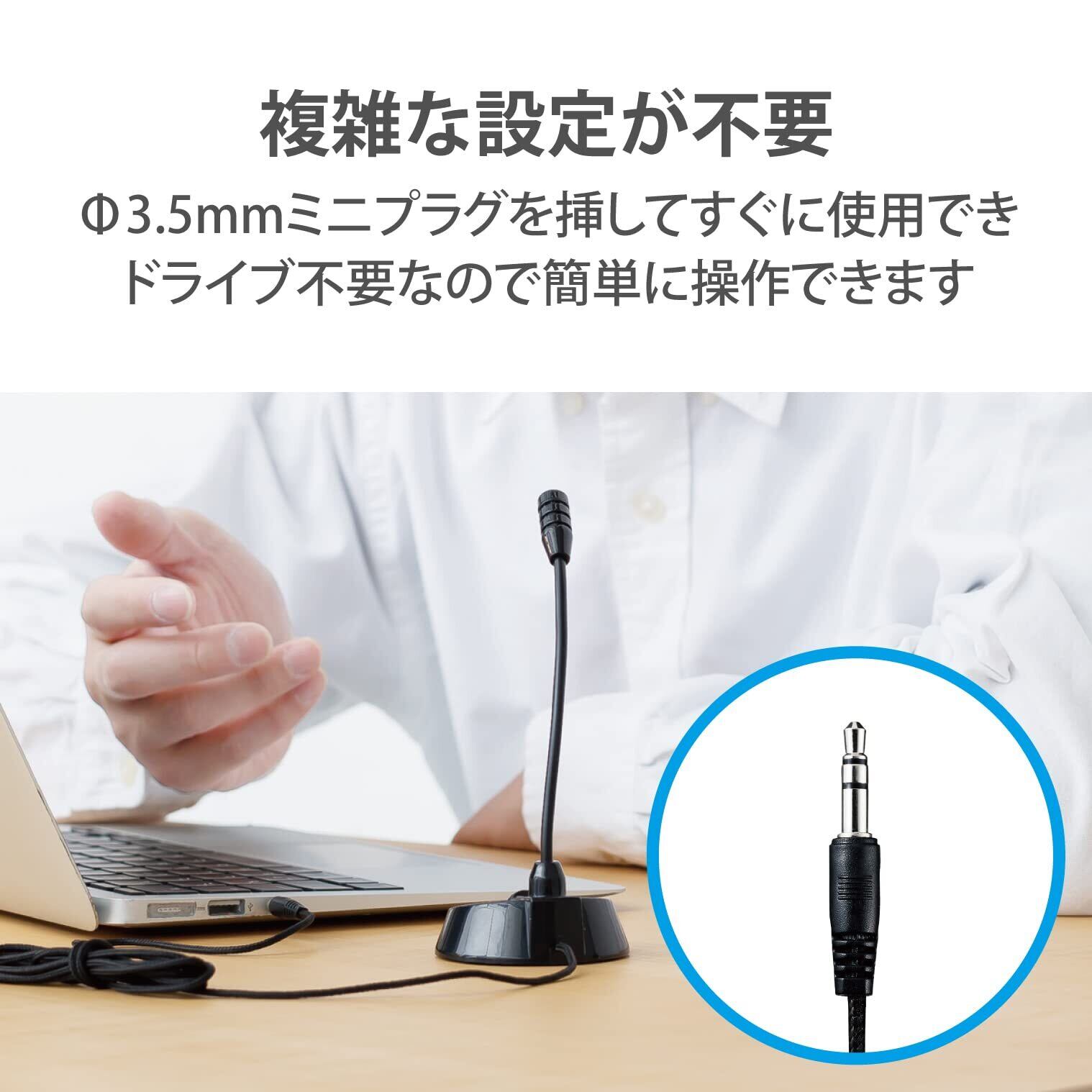 エレコム PCマイク スタンドマイク 3.5Φ 小型 フレキシブルアーム ミュートボタン付き ブラック HS-MC07BK