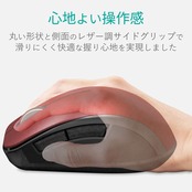 ■左右ボタンとホイールボタンに加え、「進む」、「戻る」を含めた5ボタンにサイレントスイッチを採用し、しっかりとした押し心地がありながらクリックのカチカチ音が気にならず、静かに使用できるワイヤレスマウスです。