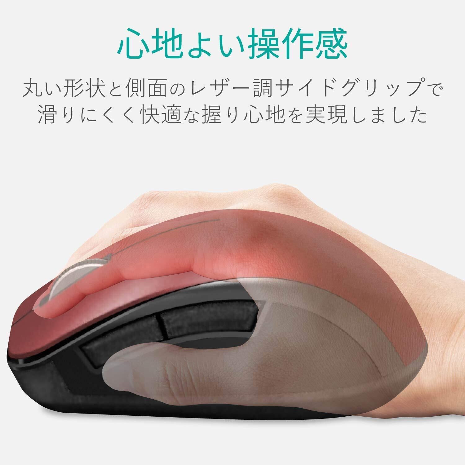エレコム マウス ワイヤレス (レシーバー付属) Mサイズ 5ボタン (戻る・進むボタン搭載) 静音 レッド M-FBL01DBXSRD
