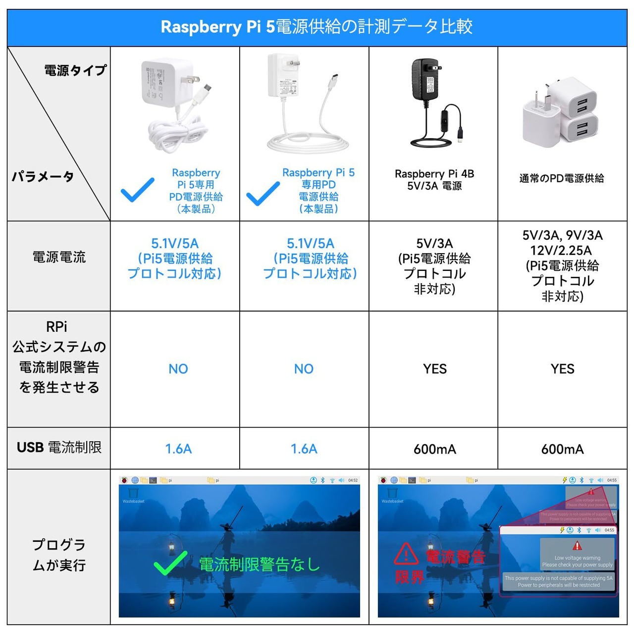 高品質電源ソリューション:Raspberry Pi 5マザーボードに安定5.1V/5A電流を供給できます。また、全負荷電力動作をしても低電圧が出てしまう悩みはありません