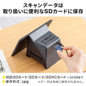 HDMI出力対応で、テレビの画面を見ながらスキャンデータを確認したり、スキャン前のフィルムを確認することができます。スキャンした画像データは、パソコン・ソフト不要でSDカードに直接保存できます。