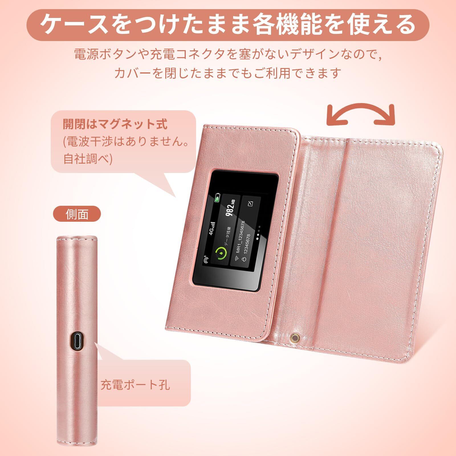 【数量限定】【リチャージWiFi】 MR1専用 モバイルルーター ケース カバー あり フリップタイプ マグネット式 全面保護 耐衝撃 放熱性(ブラック) (Rose gold)