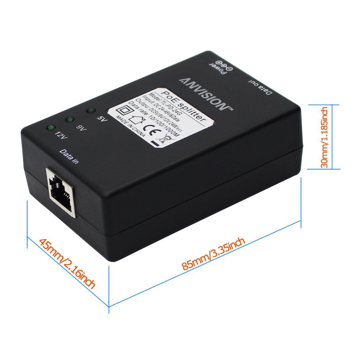 ANVISIONアクティブサイズのギガビットPoEスプリッタアダプタ、マルチサイズチップ、10/100 / 1000Mbps IEEE 802.3af準拠、IPカメラワイヤレスAP VoIP電話用DC 5V 9V 12V出力