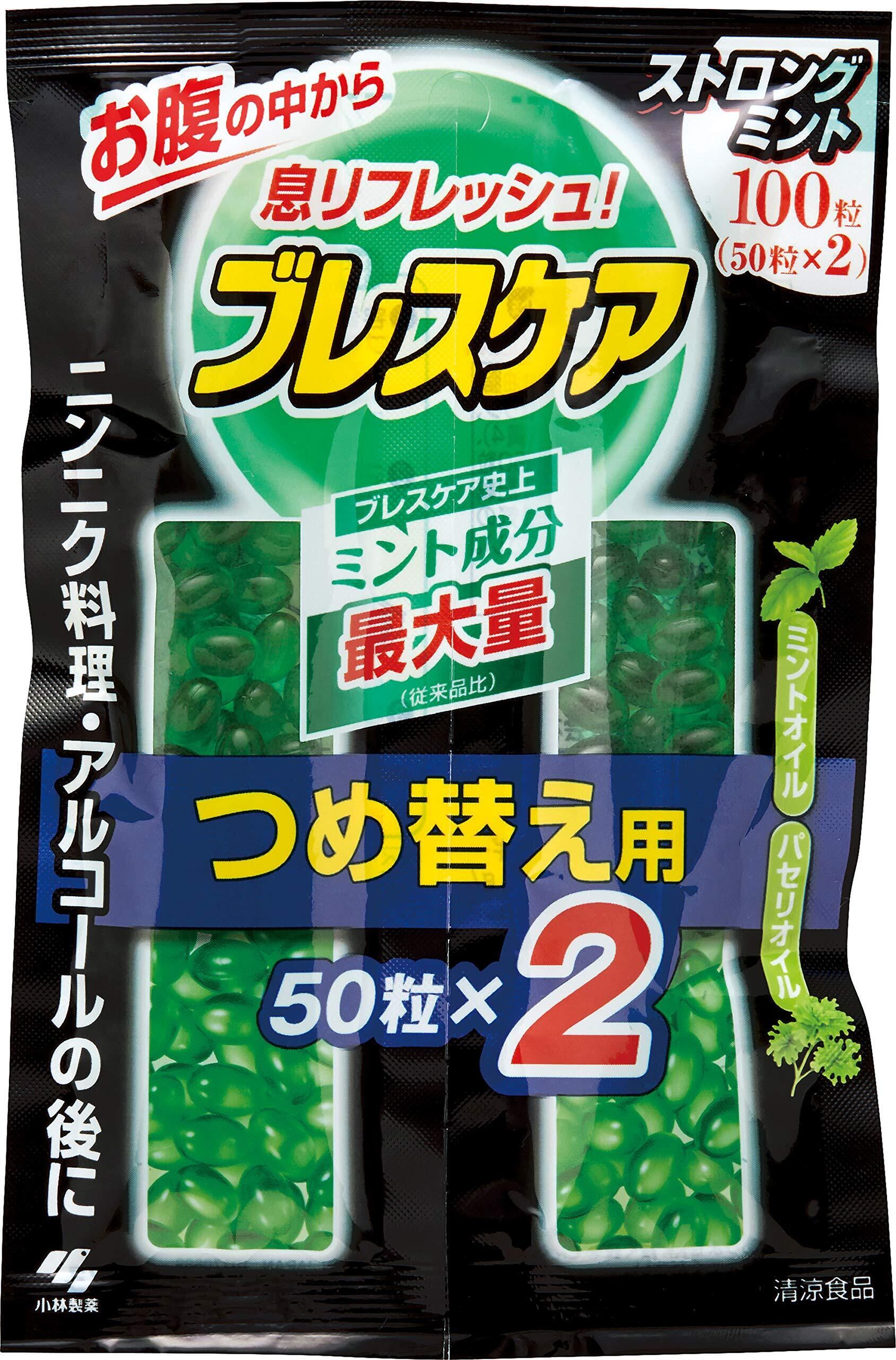 ブレスケア 水で飲む息清涼カプセル ストロングミント 詰め替え用 100粒(50粒×2個)