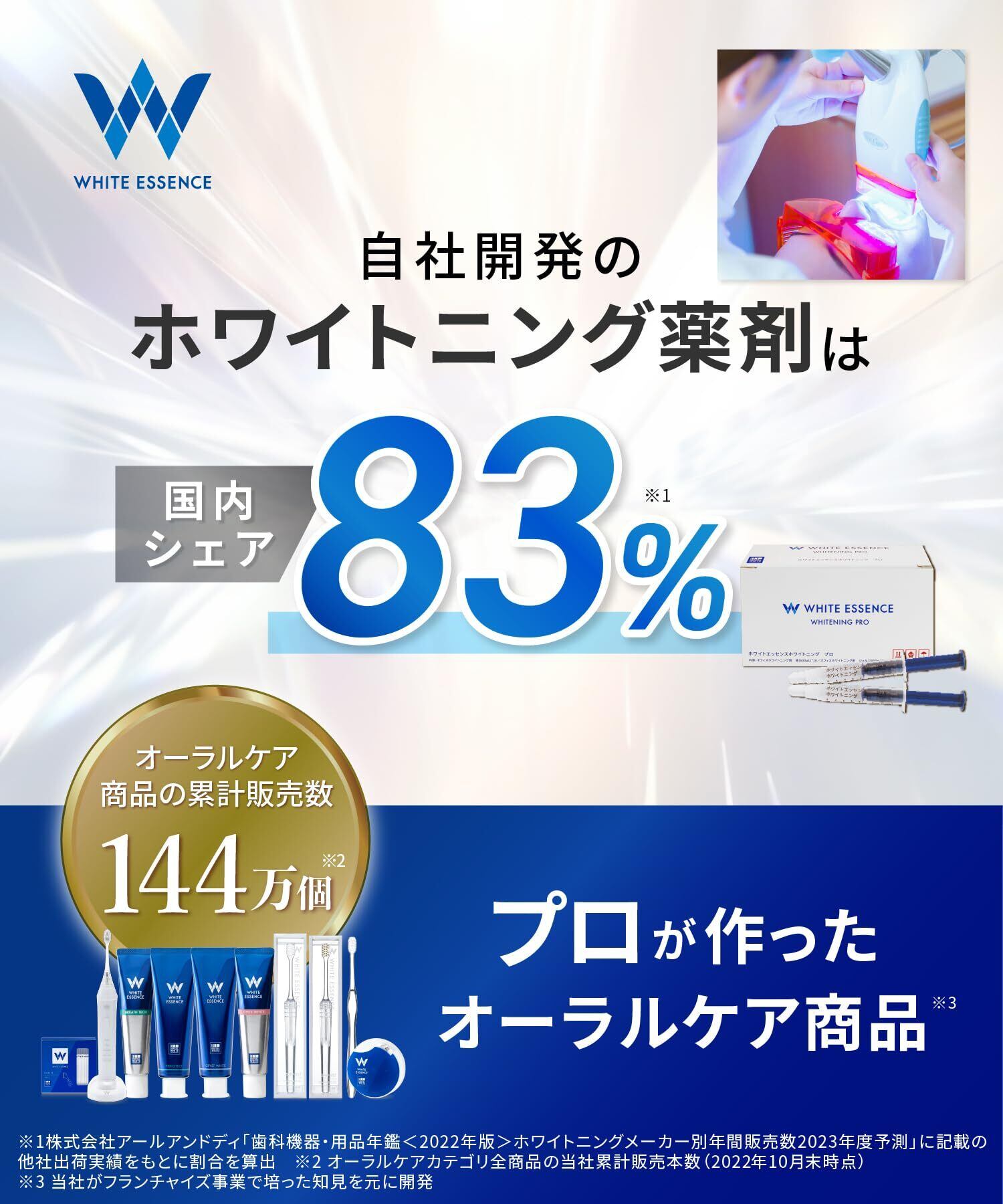 【審美歯科チェーン「ホワイトエッセンス」開発】全国275*の歯科医院で歯のホワイトニングやクリーニングなどのサービスを展開するホワイトエッセンスが開発。*2024年3月末時点