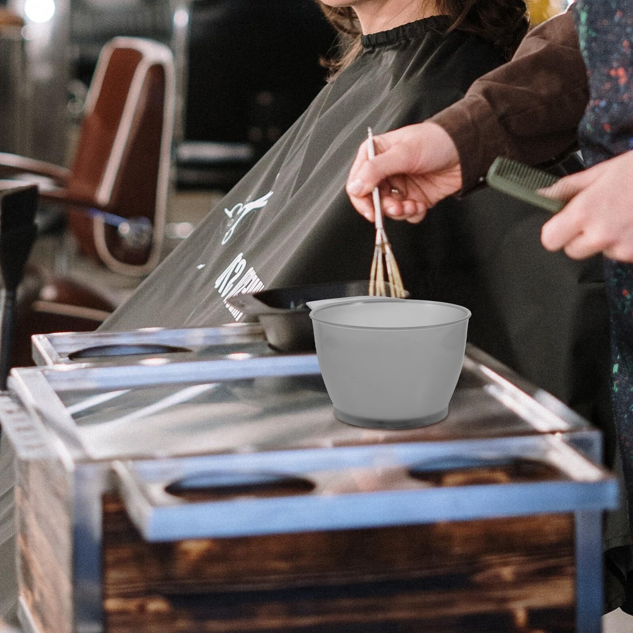 【使いやすい】染色ボウルはすべりにくいハンドル、底が平らな、しっかりと快適なホールド感があります。片手で作業する場合、髪の色を簡単に混ぜて塗ることができます。