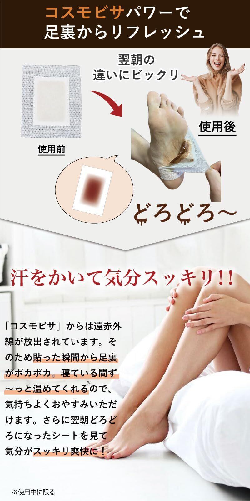 放射率98%の遠赤コスモビサ配合の足裏シートビサミンで、気分スッキリ!