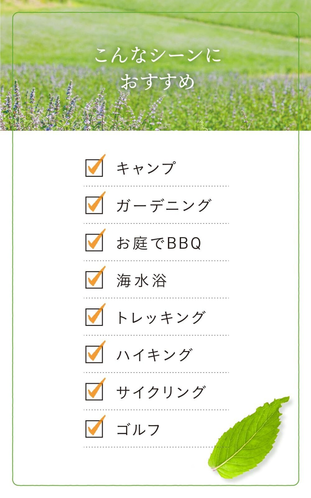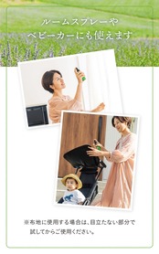 肌にやさしいから子どもと毎日使える※1歳未満の赤ちゃんや敏感肌の方は、ベビーカーや洋服、帽子などにつけてご使用ください