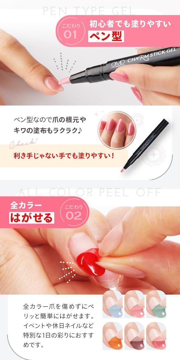 はがせるジェルネイル カラージェル OMD チャームスティックジェル約2.5g #22 ルビー 剥がせる ピールオフ オールインワン ベース ソークオフ ペディキュア 国産 日本製 セルフ サロン アート