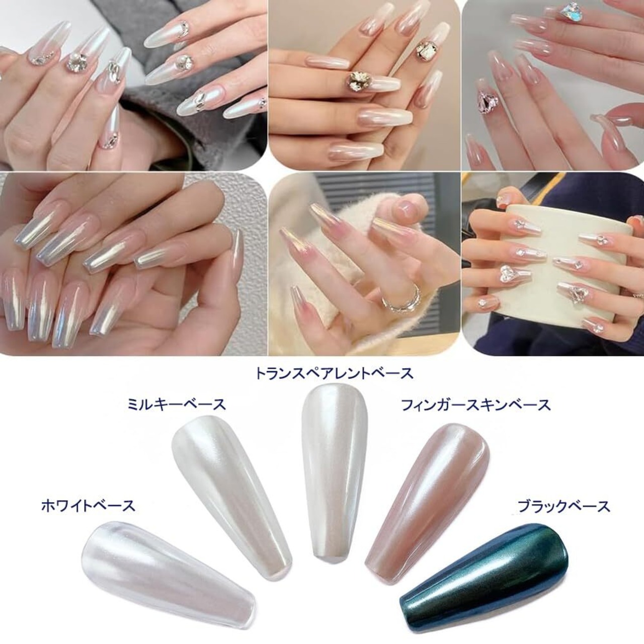 【簡単な使用方法】操作が簡単で効果が抜群です。まず、爪を清潔にし、ベースカラーのネイルポリッシュを塗布します。次に、トップコートを施し、その後、均等にオーロラパールネイルパウダーを塗布します。最後に、LED/UVライトで完全に乾燥させます。白や透明のベースカラーを使用することで、ミラーネイル効果がさらに引き立ち、指先がより魅力的になります。