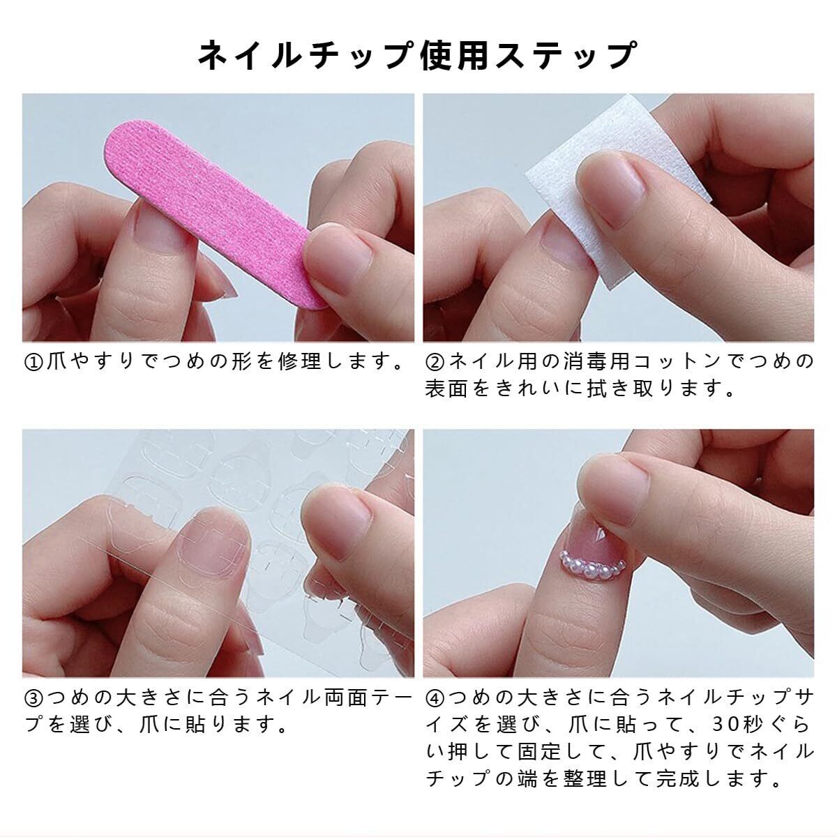 【届いたらすぐに使用できる】ネイルチップ(24枚・12別サイズ)/両面テープ2枚(48個)/爪やすり1本/木の棒1本など含んで、届いたらすぐに使用ができて、5-10分ぐらいはやく完成します。ネイルサロンに行くことが必要なく、お自宅で気軽的に綺麗なネイルが出来て、初心者でもお簡単に完成られます。