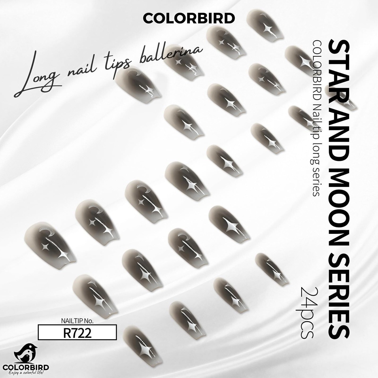 COLORBIRD ネイルチップ ロング 24枚 黒 ネイル 付け爪 チップ 短め 可愛い バレリーナ (R722)