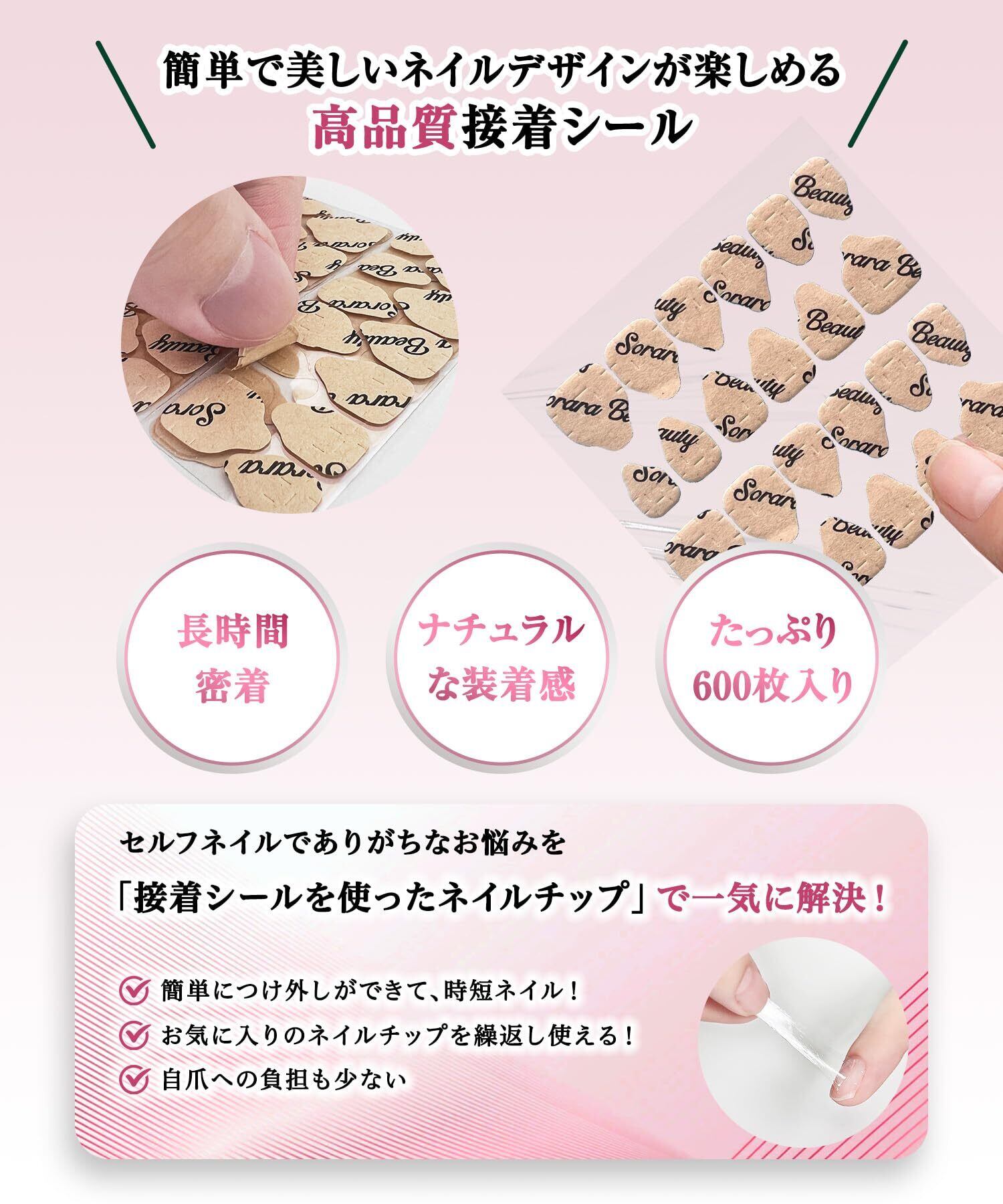 【特価セール】【現役ネイリスト監修】SoraraBeauty 超強力 ネイルチップ専用接着シール 付け爪 つけ爪 両面テープ ネイル つけづめ 爪用 接着剤 テープ グルー 0.3mm 極薄 透明 防水 通常サイズ ピンク (ピンク, 600枚入) | KURASHILABO