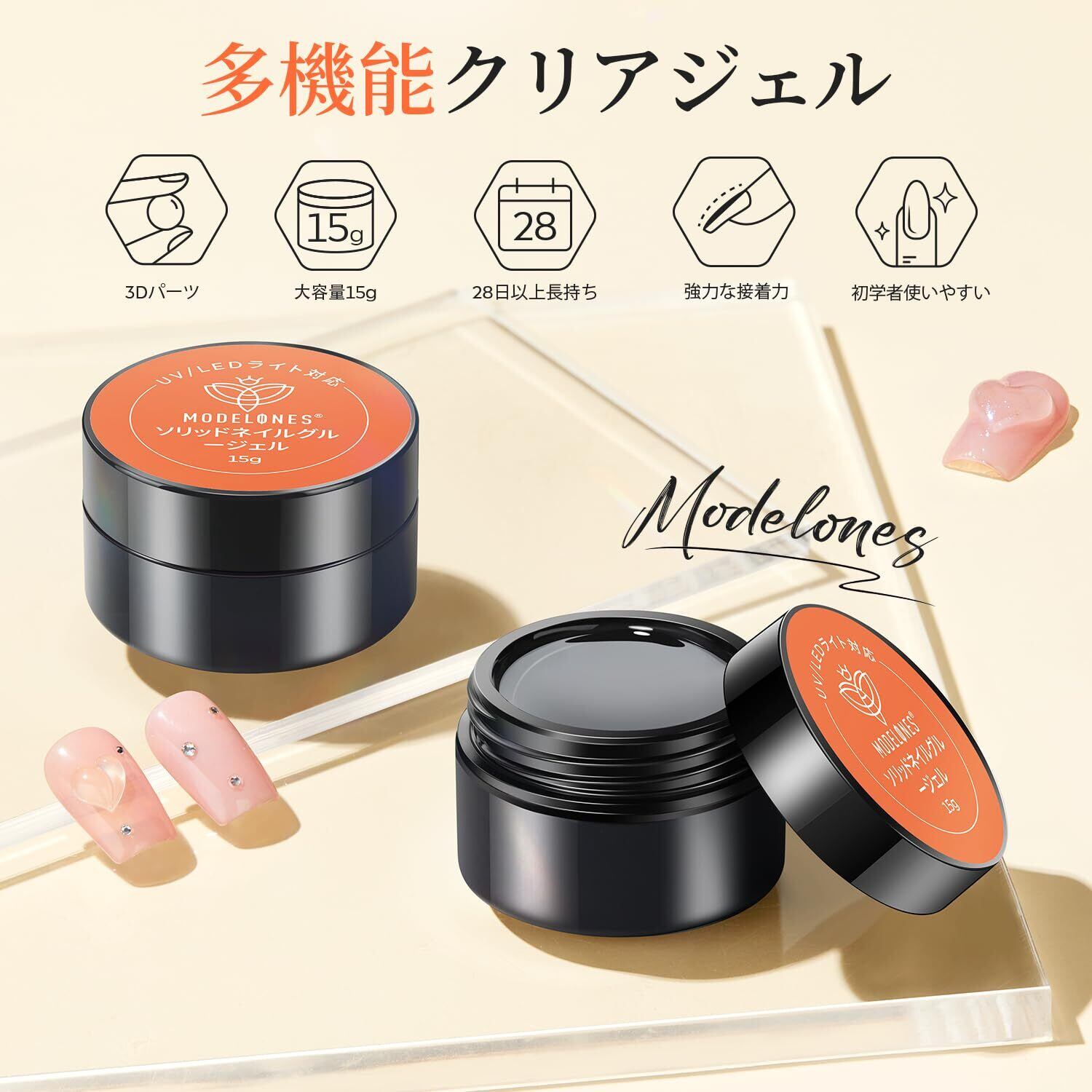 【新春セール】Modelones ネイルチップ接着剤 粘土ジェル ジェルネイル 3Dパーツ ベースコート 15gクリア ネイルグルー パーツ付け専用 固定ジェル3in1セルフネイル手にくっつかない(クリア-ネイル接着剤) | KURASHILABO