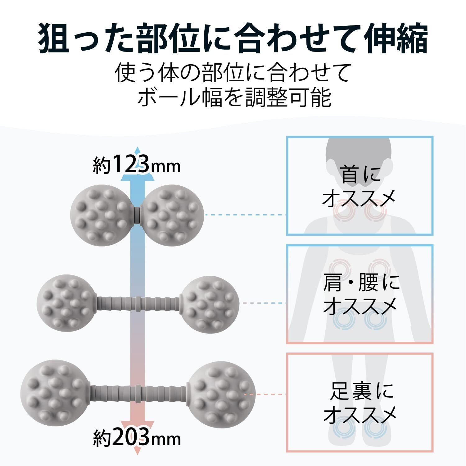 体の部位に合わせてボール幅を最短約123mmから最長約203mmの間で調節可能です。
