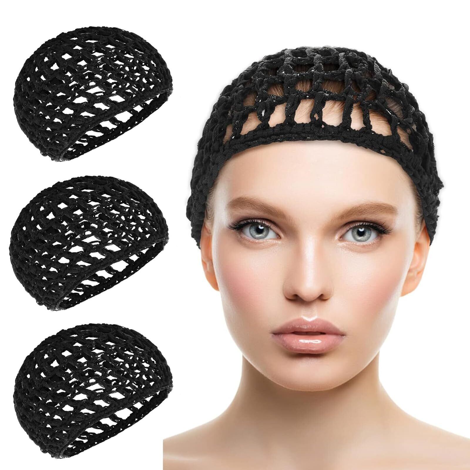 【十分な数】黒いかぎ針編みのヘアネット帽を3枚受け取り、異なる服を簡単に組み合わせることができます。日常生活の中で置き換えるには十分な数があるか、家族と共有することができます。