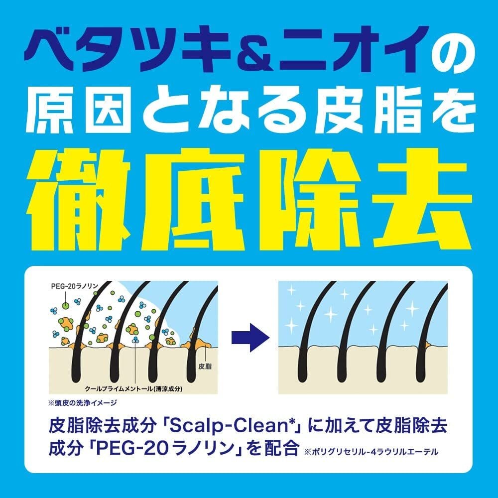 豊かな泡立ちでベタツキやニオイの原因となる皮脂まで徹底除去し、サッパリ感が続きます。独自の清涼剤配合で心地よい爽快感を与えます。
