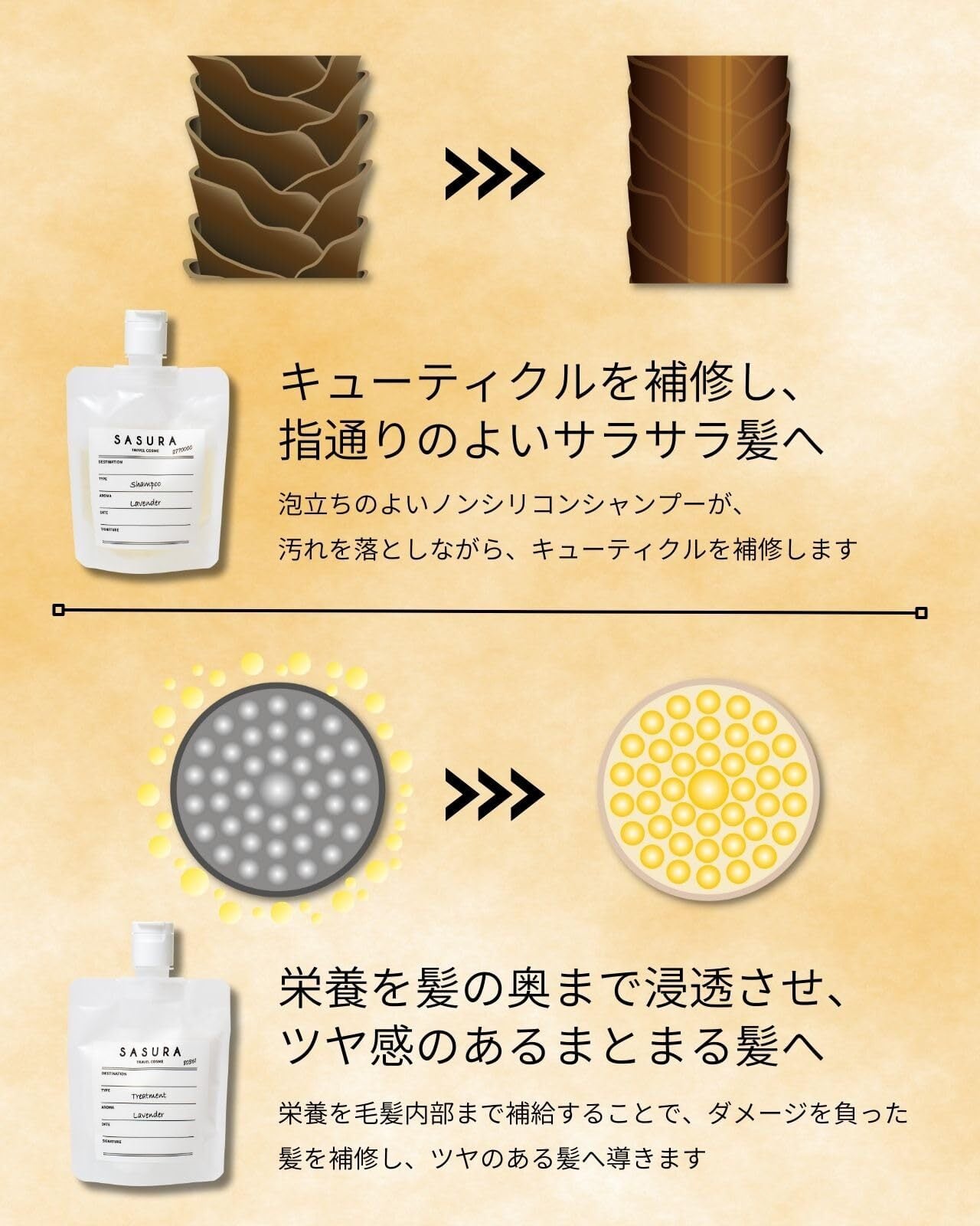 SASURA ダメージケア シャンプー トリートメント トラベルセット 旅行 各100ml ラベンダーの香り エコ ユニセックス