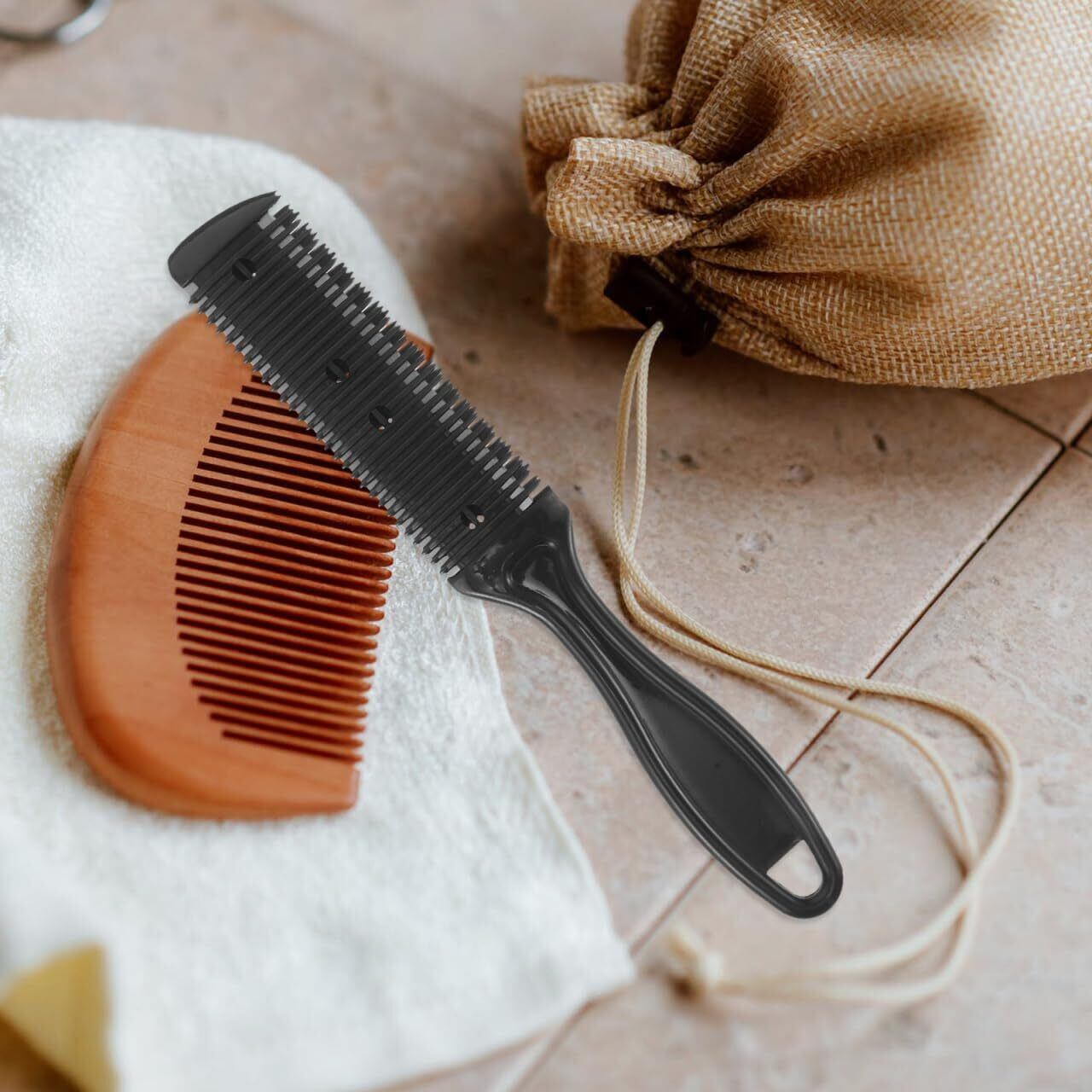 【数量限定】POPETPOP レザーカット トリマーカッター スキバサミ チタントリマー ヘアカッター くし型 ピルカッター レディースカミソリ プロ ヘアーカッター くし 散髪 間伐 逃す 道具 | KURASHILABO