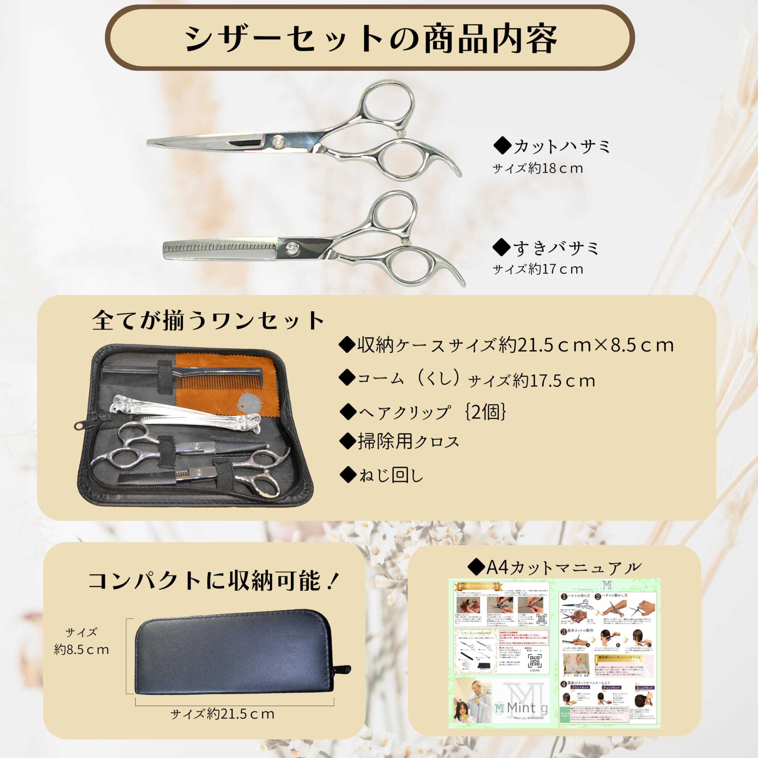 Mint g 【散髪はさみセット】 初心者でも安心 セルフカット用すきバサミ&カットバサミ 子供〜大人兼用 プロ監修カットマニュアル付き 収納ケース付き