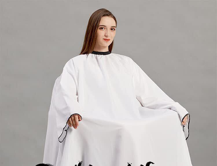[Giitoo] ヘアカット ケープ 静電気に負けない カットクロス 袖有 散髪ケープ ヘアエプロン (白 ポンギー)