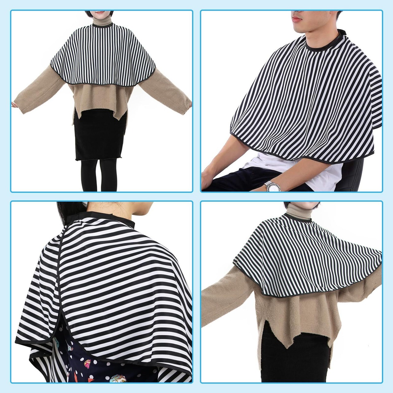 【使いやすい】ネックラインは首周りに快適にフィットし、サイズを自由に調整でき、さまざまな首のサイズにフィットします。美容師のケープは手入れが簡単で素早く乾きます。 自宅で散髪しても髪の毛の飛び散りを防止し、お掃除の手間を大幅に 軽減できます。