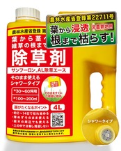 雑草にかけるだけで、葉から浸透し、根まで枯らすタイプ除草剤です。雑草対策はこれにお任せ! 散布しやすい注ぎ口シャワータイプ 4Lで約100~200平方メートル散布できます。