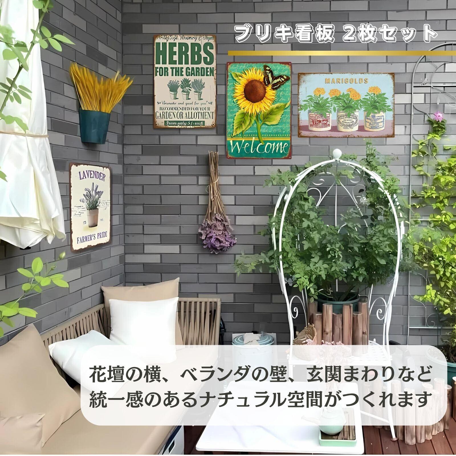 2枚セットなので、花壇の横、ベランダの壁、玄関まわりなど、異なる場所に飾って統一感のあるナチュラル空間がつくれます。