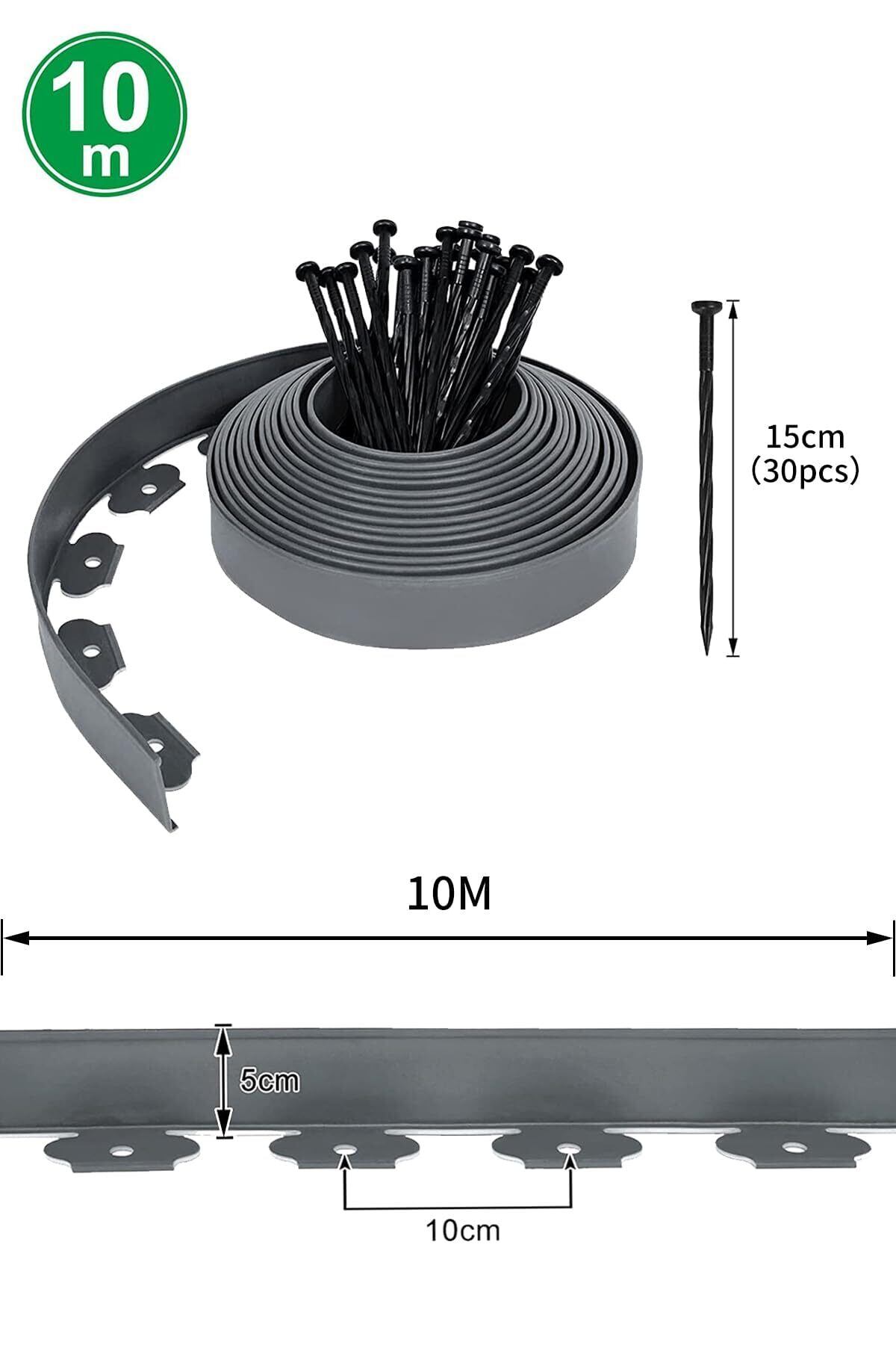 ガーデンエッジ フェンス 花壇フェンス 土留め 芝の根止めにも DIY 庭造り 園芸 新型厚肉Lタイプ 簡単な取り付け (高さ5cm×長さ10m, ブラック)