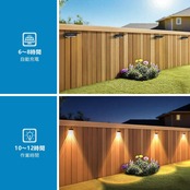 【長時間点灯&自動点灯/消灯】ソーラーフェンスライトは直射日光下で6~8時間フル充電すると、夜間10~12時間点灯します。日中はソーラーパネルが太陽光を電気に変換し、夕暮れから夜明けまで自動的に点灯します。スイッチを入れるだけで、夜間の照明をお楽しみいただけます。