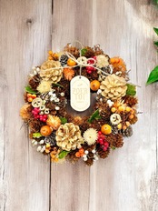 【2022最新】[ 2025年 mamawreath A ]ギフト プレゼント フラワーギフト 秋リース 玄関用 ハロウィン ハローウィン 永遠の意味 Mサイズ:25cm(直径)×7.5cm(厚み) (秋パイン(HW645-B))