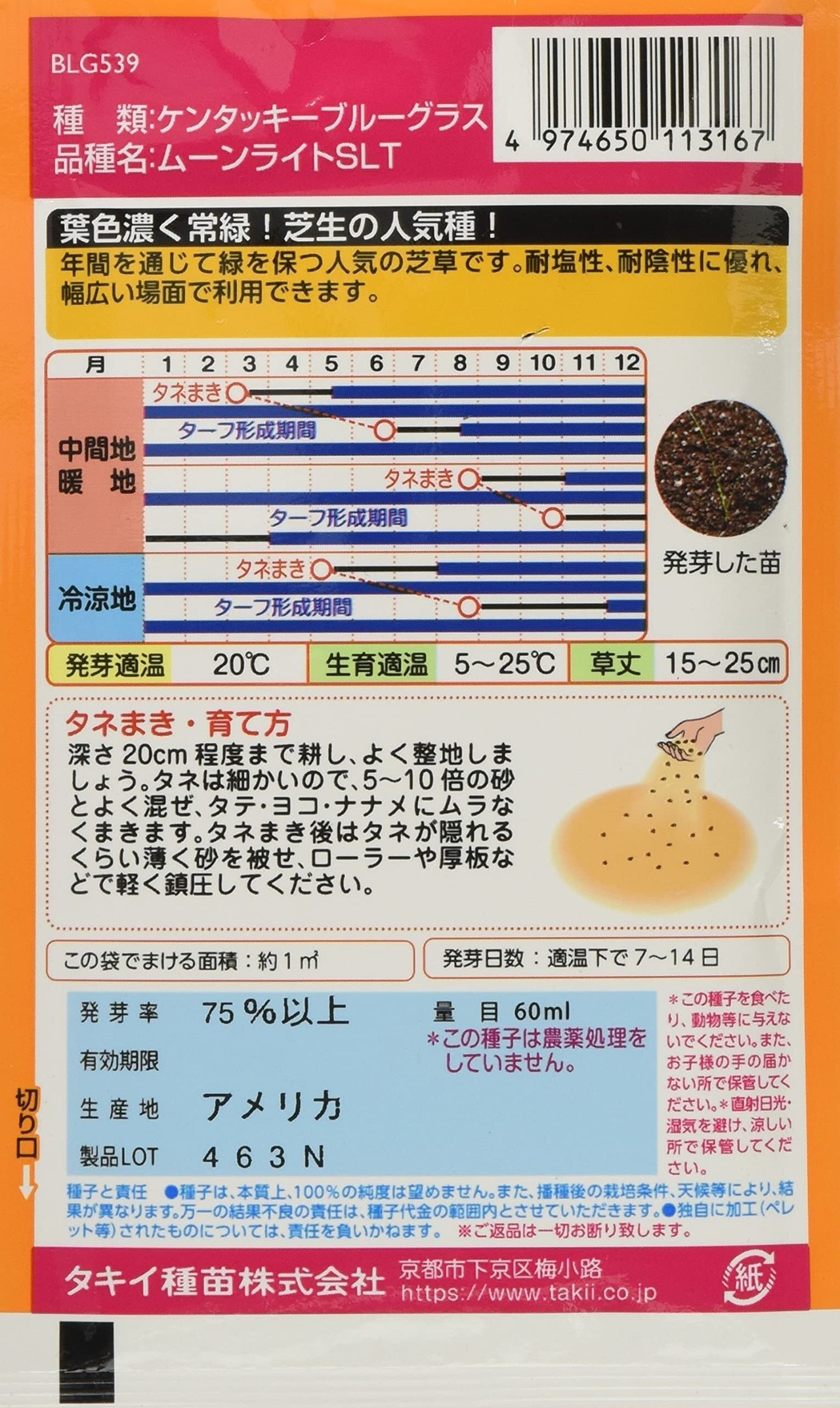 ★【信頼の品質をお届け!】「タキイ種苗 ケンタッキーブルーグラス ムーンライトSLT」は、厳選された種子を使用しており、高い品質が保証されています。育て方に関する詳細なガイドも付属しているため、疑問点があれば遠慮なくお問い合わせください。あなたの庭で、素晴らしい芝生の成長を楽しんでください!